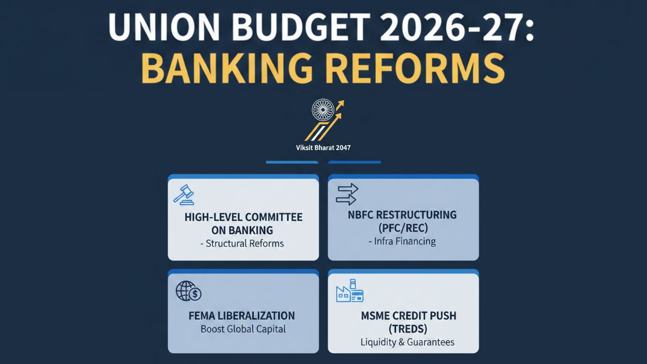 Explore the major banking reforms announced in Union Budget 2026, including PSB strategy, bond market expansion, FEMA reforms, MSME liquidity measures, and infrastructure financing initiatives....