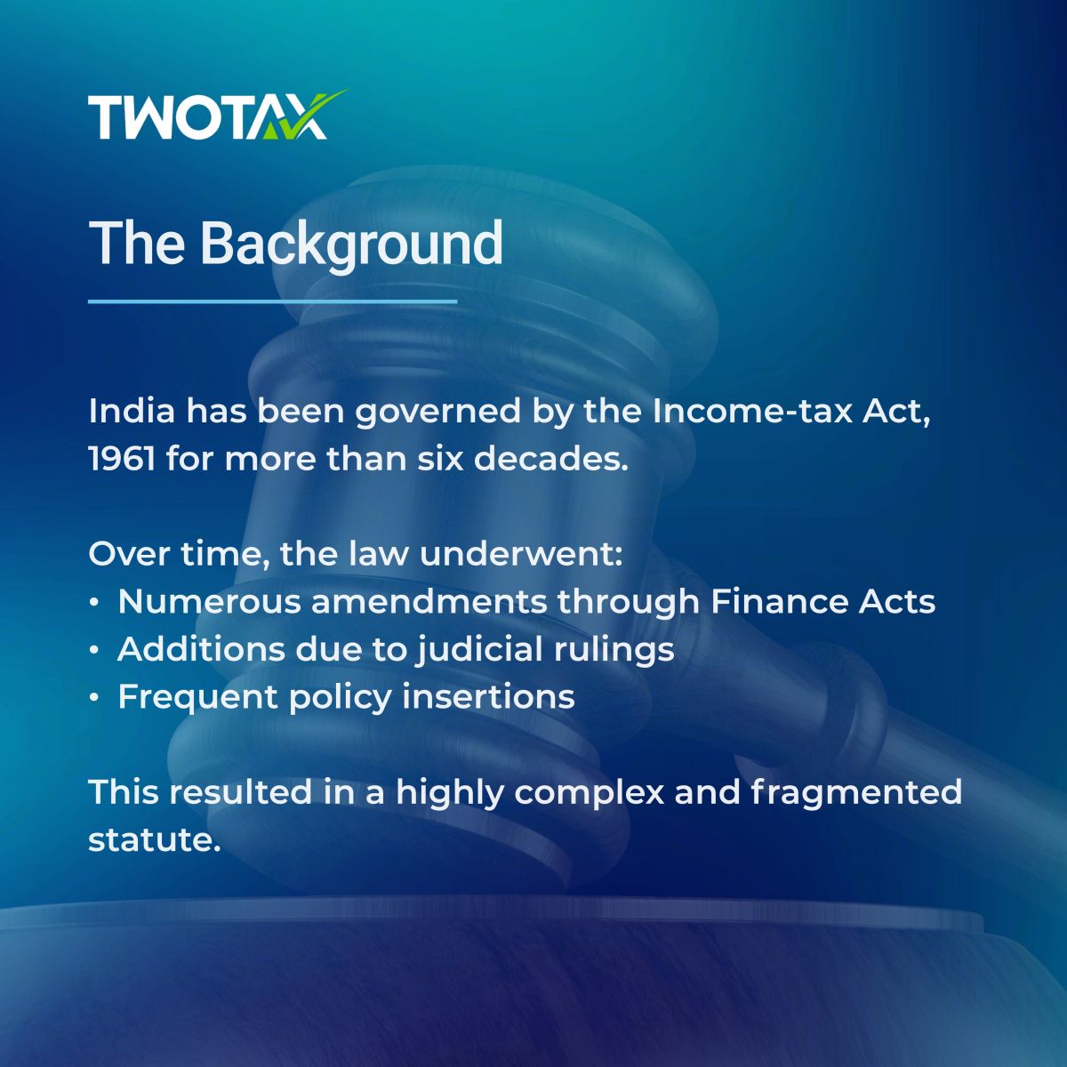 This growing complexity highlighted the need for a comprehensive restructuring of India’s income-tax law, rather than merely introducing incremental amendments.