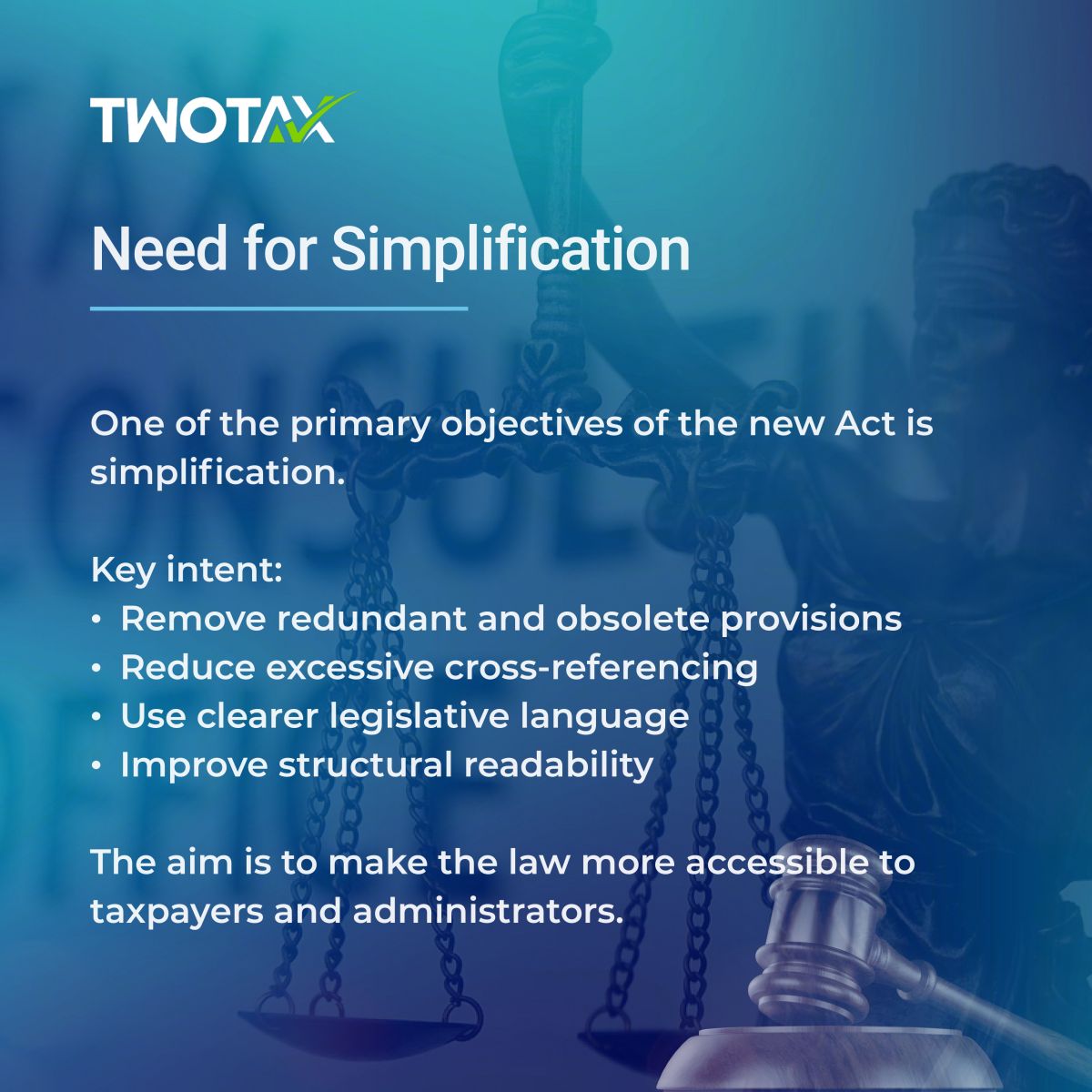 By simplifying the legislative structure, the government aims to make the law more accessible to taxpayers, professionals, and administrators alike.