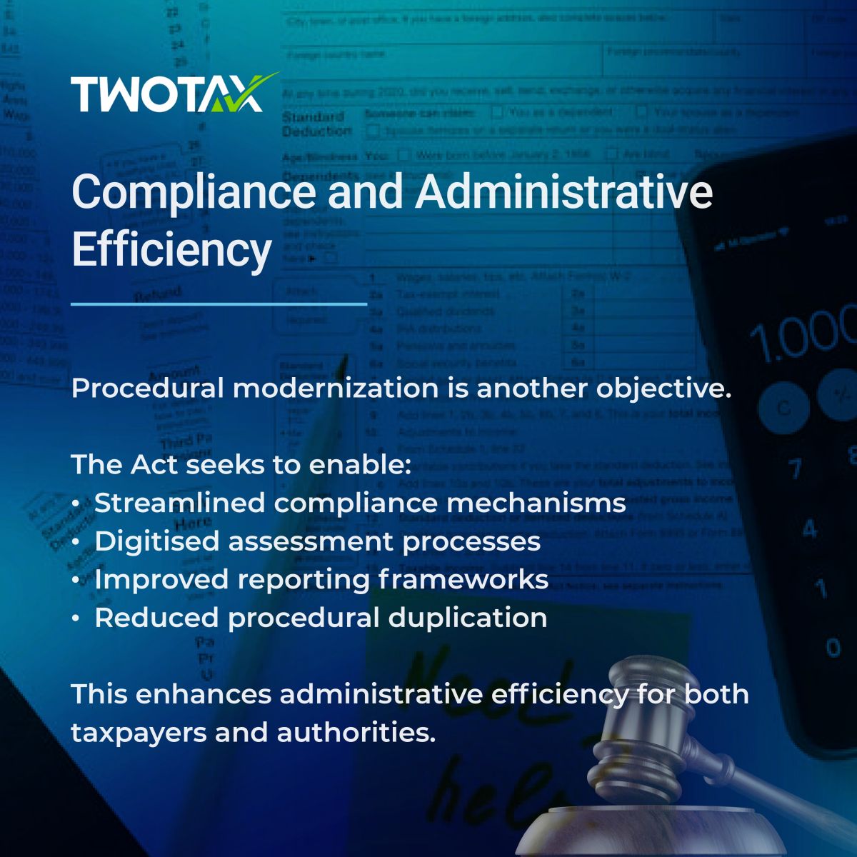 In addition to legislative simplification, the new Act focuses on improving administrative efficiency and compliance mechanisms.