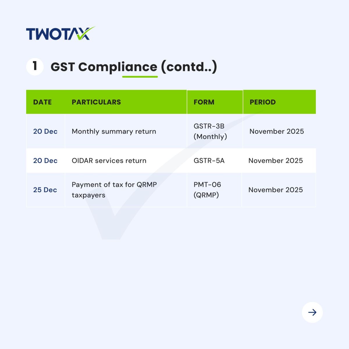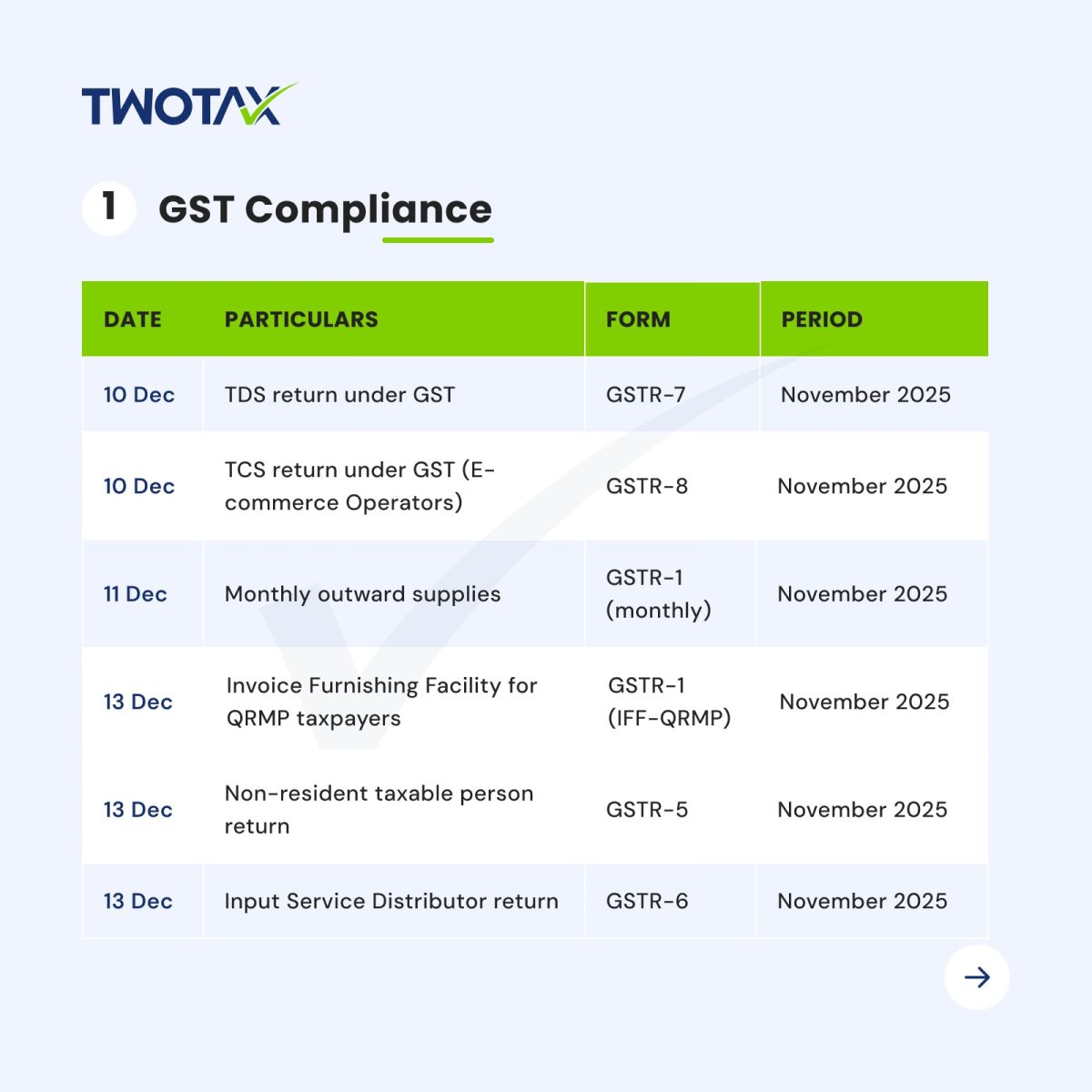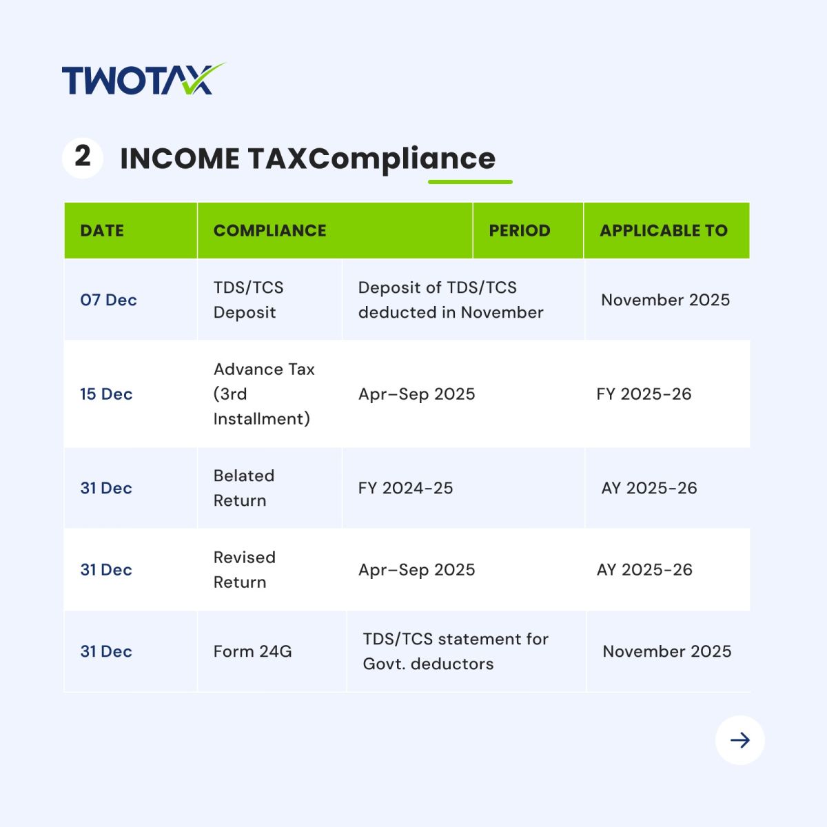 Stay updated with the complete Compliance Calendar for December 2025, covering all key GST returns, TDS/TCS deposits, Income Tax deadlines, Advance Tax, MCA filings, PF & ESI due dates. Curated and authored by CA (Dr.) Arpit Yadav, this guide helps businesses and professionals track every important regulatory requirement for the month. Never miss a deadline with this comprehensive compliance schedule.